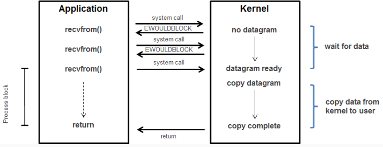- 데이터가 입력여부와 상관없이 요청하는 그 순간 바로 결과를 반환한다. (만약 입력데이터가 없다면 결과메세지 {EWOULDBLOCK}를 반환 )