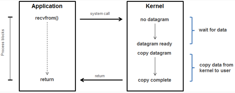가장 기본적인 I/O 모델로 리눅스에서 모든 소켓 통신은 기본 블로킹으로 동작한다.