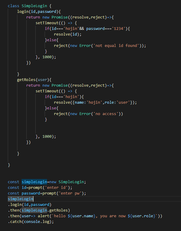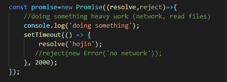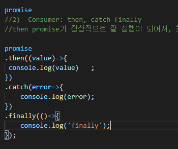 .then : promise안에 속해 있는 then함수는 위의 resolve callback함수에서 전달한 값이 then의 value로 전달한다.
