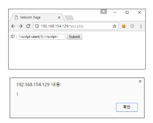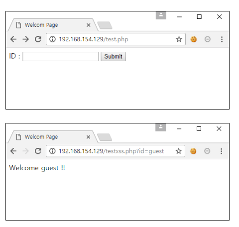 아래와 같이 id를 입력하면 Welcome id !! 를 출력해주는 페이지가 있다고 가정