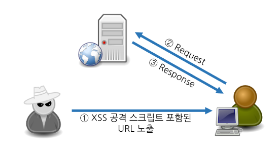 - 사용자는 공격자가 심어넣은 악성 링크 클릭하면 공격 스크립트 실행