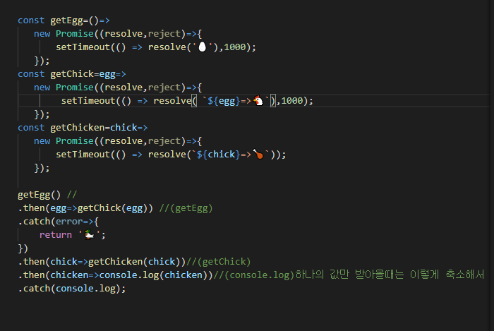 then은 값을 바로 전달할 수도 있지만 위에서 보기와 같이 Promise를 전달할 수도 있다.