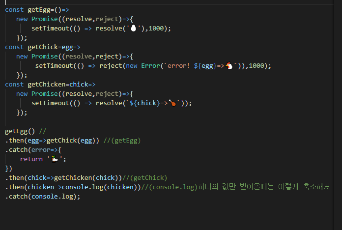 .catch : producer에서 에러가 발생했을 때는 catch에서 값을 전달 받는다.
