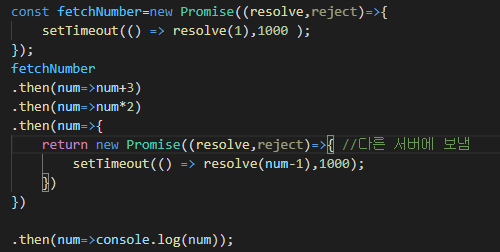 .then : promise안에 속해 있는 then함수는 위의 resolve callback함수에서 전달한 값이 then의 value로 전달한다.