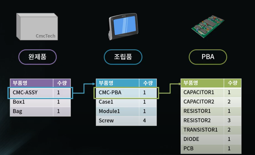 - BOM이 반제품인 경우 역계층으로 볼 필요가 있다.