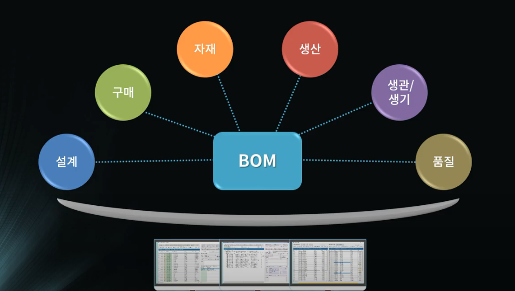 BOM을 기준으로 설계 구매 자재 , 생산, 생산관리 , 생산기술, 등 제품의 생산을 관리한다.