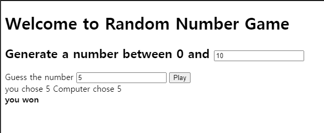 만약 내가 고른 번호와 컴퓨터가 고른 번호가 같다면 you won!으로 바뀐다.