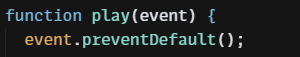 play라는 function안에다가 브라우저가 초기화되는 동작을 막기 위해 preventDefault()메소드를 사용한다.