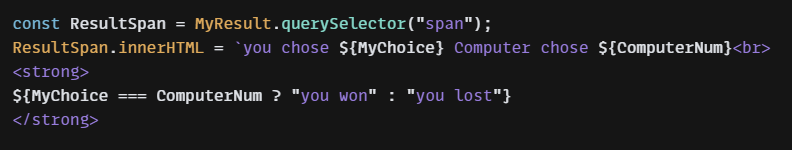 querySelector로 span값을 받아와 어떻게 결과가 나타나는 지 써준다.