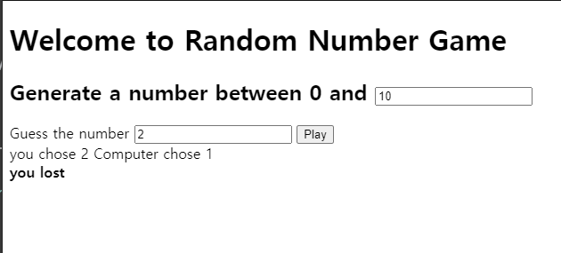 같아질 경우 you lost에서 you won으로 바뀌는 것을 볼 수 있다.