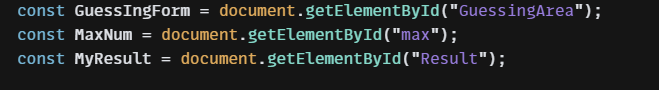 먼저 필요한 form , max, result을 받아올 수 있도록 id요소를 받아오는 getElementById를 사용하여 요소를