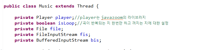 그 다음 하나의 작은 프로그램(Thread) 를 상속받아 음악을 재생할 수 있게 해준다.