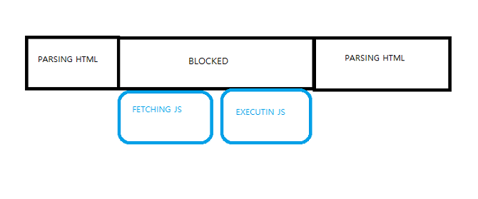 순서에 상관없이 js를 fetching 하고 끝날 때마다 실행하여 html이 멈추게 된다.