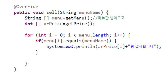 이 sell메소드에서 getMenu(), getPrice()를 사용할 수 있는 이유는 같은 클래스안에 있기 때문이다.