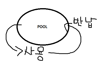 그림처럼 커넥션 풀은 데이터베이스와 연결된 커넥션을 미리 만들어 POOL에 저장해두고 있다고 필요할 때 커넥션을 풀에서 가져다 쓰고 다시 풀에 반환하는 것이다.