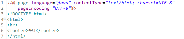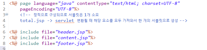 total.jsp에 include를 넣어 헤더, 컨텐트, 풋터 세 가지의 jsp파일을 만들었다. 이 상태에서 total.jsp를 실행하면