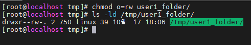 ex) chmod o-r /tmp/user1_folder==일반 사용자에서 r(읽기권한을 삭제한다)