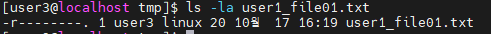 현재 user1_file01.txt가 있는데 퍼미션을 수정하려면