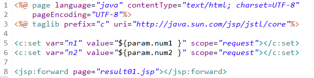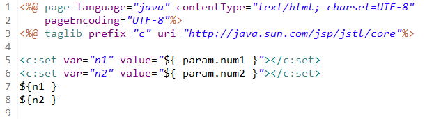 JSTL을 통해 그 값이 표현된다. 여기서 n1,n2는 <c:set에서 이름을 지어준 var로 잘 매치를 해주는 것이 중요하다.