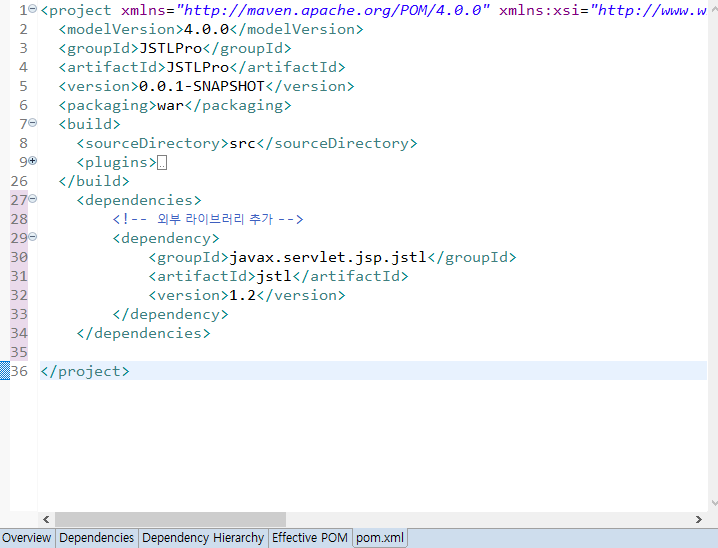 해당 프로젝트 pom.xml에 jstl세팅