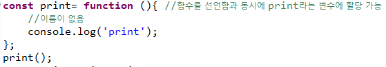 이렇게 할당된 print는 호이스팅이 되지 않지만 함수 선언은 호이스팅이 가능하다.