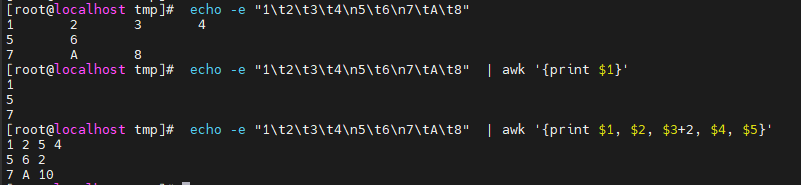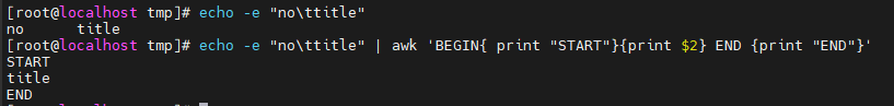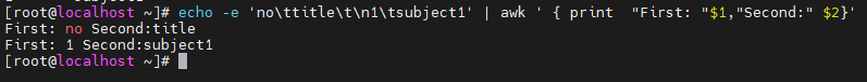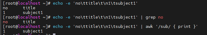 action을 생략하면 기본 액션인 print가 실행된다 => ex. ) echo -e 'no\title\t\n1\tsubject1' | awk '/sub/'