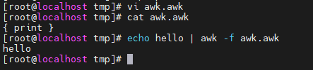 vi awk.awk.에 {print}를 넣은 다음 cat .awk.awk로 파일을 읽어오면 호출이된다.