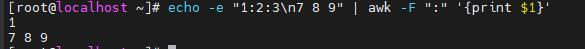 따라서 밑에 코드는 필드 1번 $1만 나오게 출력을 했는데 1:2:3은 공백이 없어 1개의 필드로 인식하여 다 나온게 되었다. 따라서 필드 구분하는 구분자를 내가 원하게 세팅해줘야 한다.