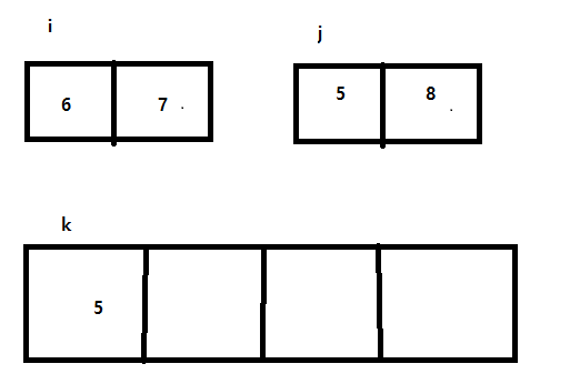 1. 현재 위치의 i와 j를 비교해 작은 수를 k에 넣는다.