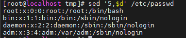 [root@localhost tmp]# sed '5,45d' /etc/passwd ==5번째부터 45번째까지 삭제한다