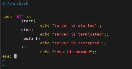 해석해보자면 $1의 값이 start인 경우, stop인 경우, restart인 경우 *(그 외) 인경우 각각 출력문을 담고 있다