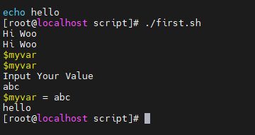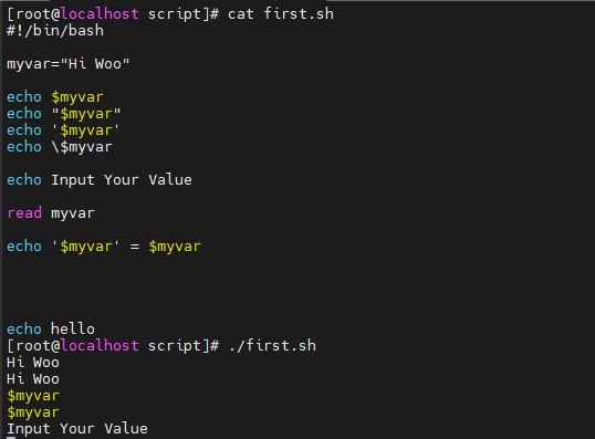 first.sh에 위와 같이 작성한 후 실행한 장면이다
