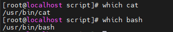 각각 cat의 위치와 bash의 위치가 보인다