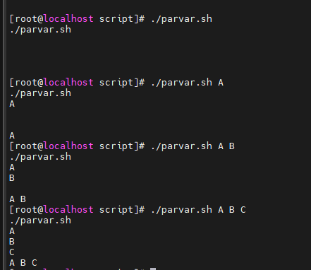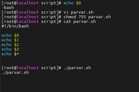 vi parvar.sh로 위와같이 적어서 실행할 경우 현재 실행파일인 ./parvar.sh만 나온다