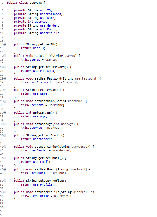 만든 이 테이블에 접근할 수 있는 JAVABEANS를 만들어야 한다.