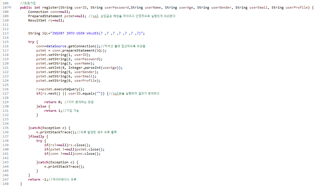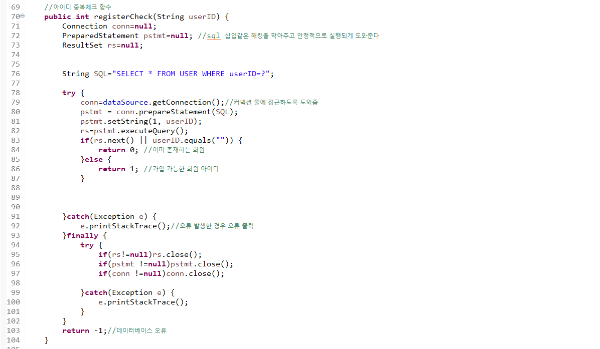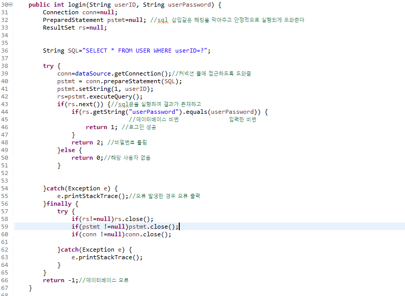 이렇게 DB와 접속하여 CRUD를 수행하는 로직을 DAO에 작성해준다.