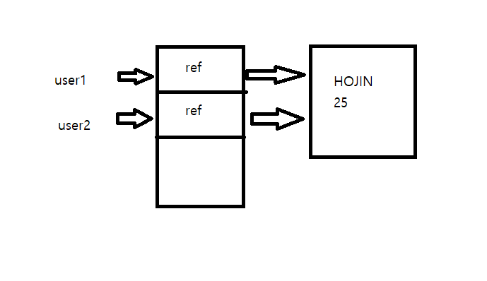이렇게 되어 있다. 따라서 user1이랑 user2가 같은 ref와 같은 값을 가지고 있다고 볼 수 있다.