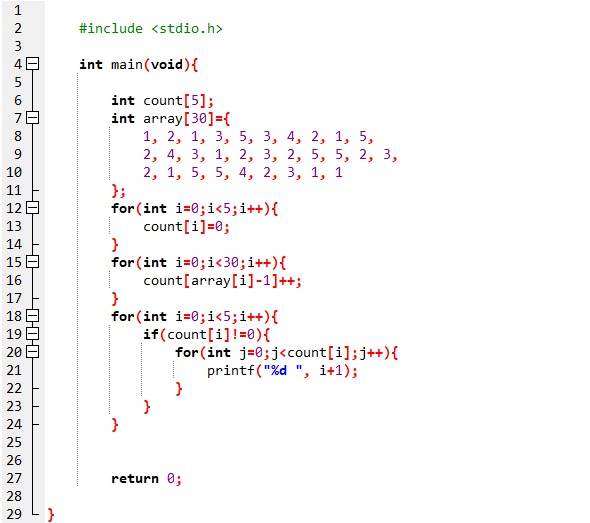 12번 라인은 각 count배열의 값을 0으로 초기화 시켜주고