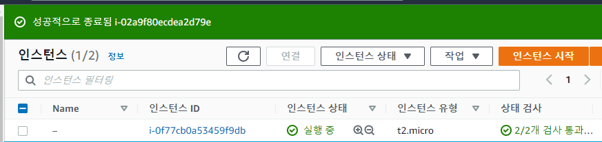- 인스턴스에 들어가서 시작을 눌러준다.