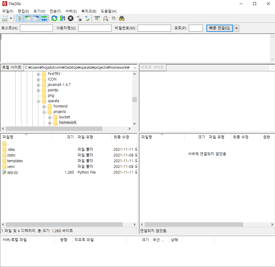 오른쪽에 연결이 되면 static, templates, app.py를 넣어준다.