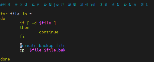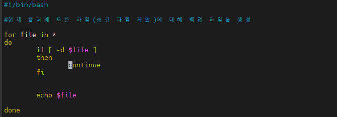 이렇게 if 문에 -d옵션(디렉토리만 출력)을 주고 filr을 출력하게 하면 파일만 출력하게 할 수가 있다.