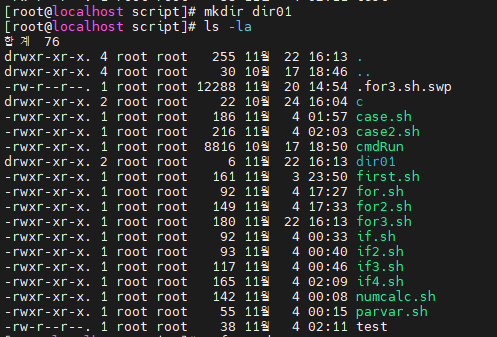 디렉토리 dir01를 만들고 ls -la를 하면 현재 디렉토리 c, dir01 이 보인다. 하지만